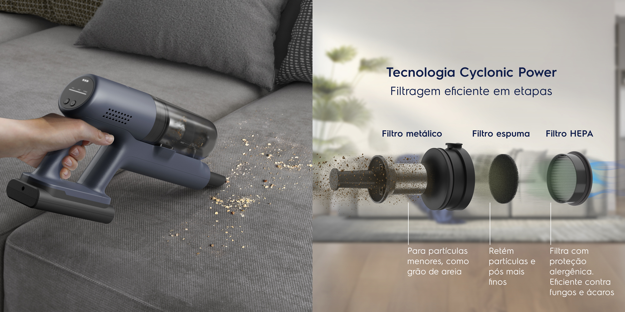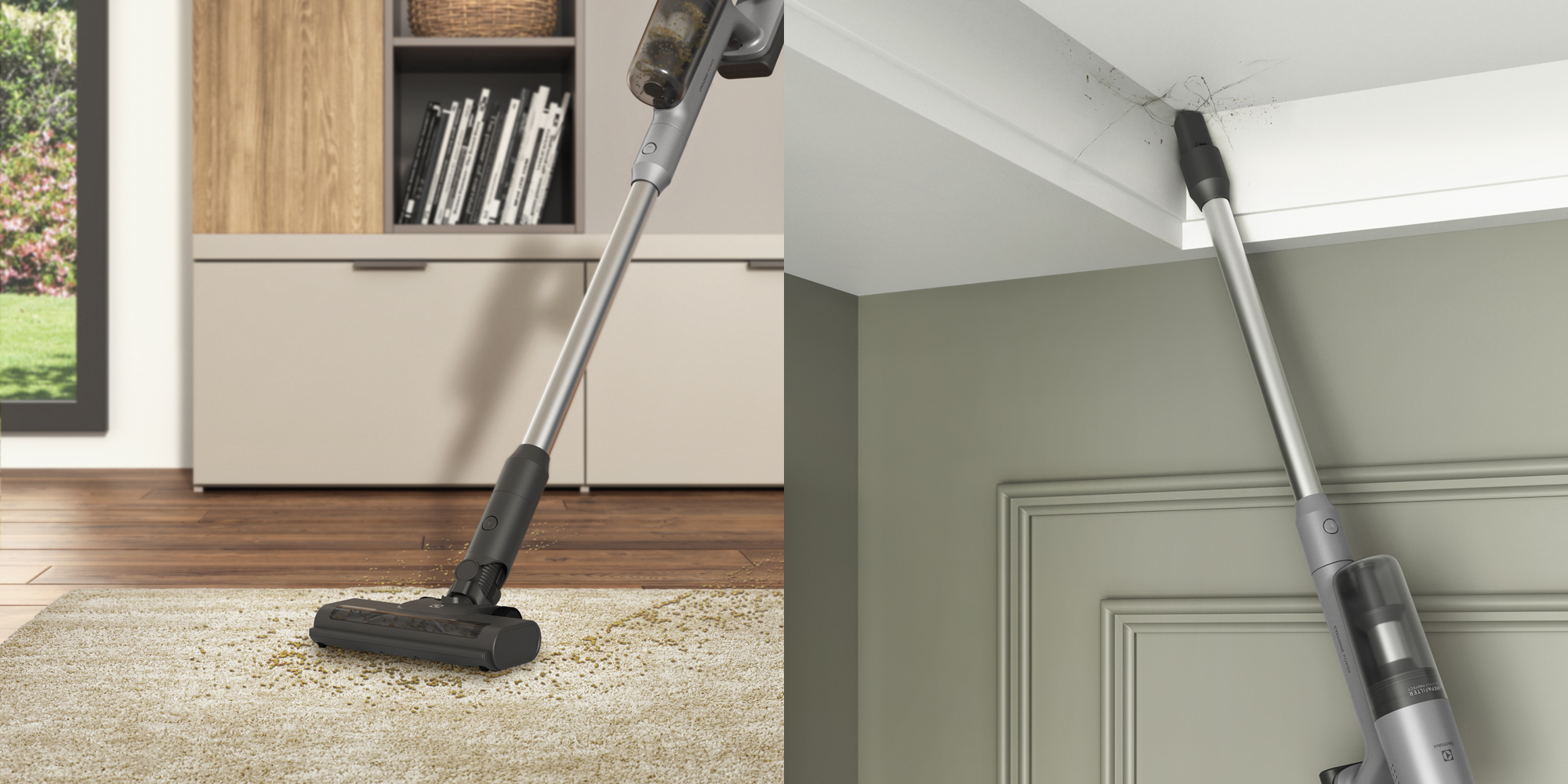 O Aspirador Vertical Electrolux Experience foi desenvolvido para tornar a limpeza doméstica mais fácil, ergonômica e sustentável. Com três modos de uso — piso, altura e unidade de mão — o produto alcança desde áreas elevadas até espaços sob os móveis, garantindo versatilidade e praticidade no dia a dia. Seu design atemporal se integra naturalmente aos lares brasileiros, enquanto o motor posicionado na altura da mão facilita manobras e reduz o esforço físico. A interface digital com botões táteis e sons de navegação garante acessibilidade, inclusive para pessoas com baixa visão. A bateria intercambiável prolonga a vida útil do produto e reduz o descarte, e o uso de materiais sem tintas ou subprocessos facilita a reciclagem.
