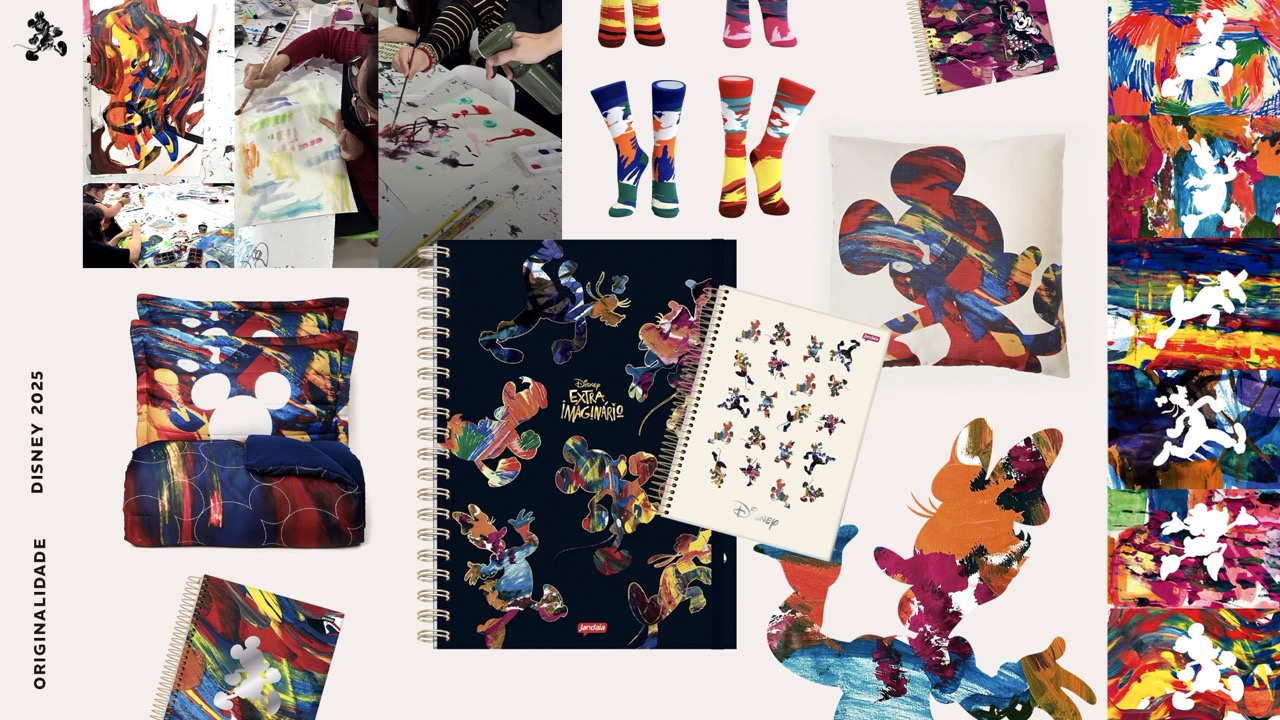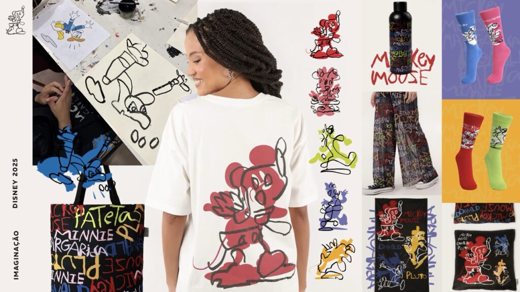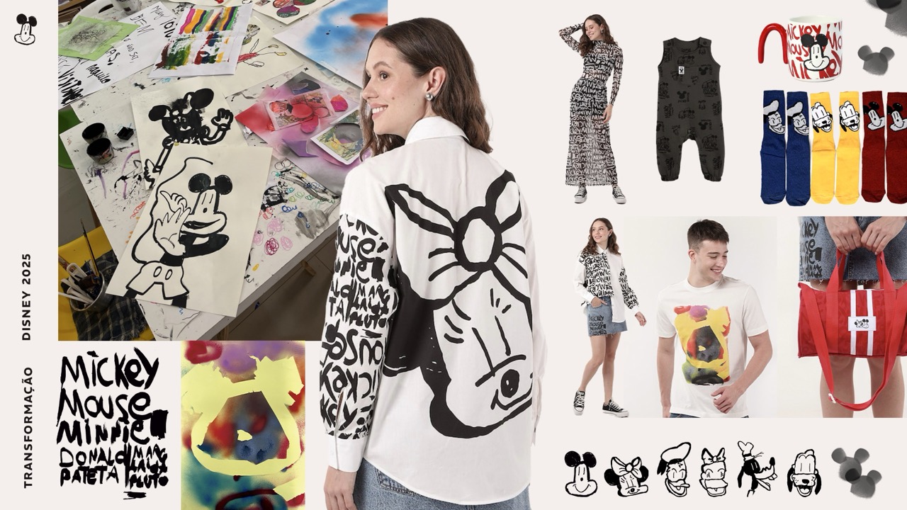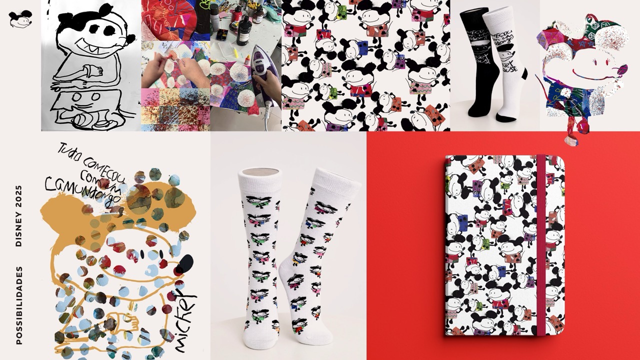 Disney Extraimaginário é uma plataforma criativa que promove a livre expressão de artistas neurodivergentes e com deficiência intelectual na América Latina, reimaginando personagens icônicos da Disney sob novas perspectivas. A iniciativa é resultado da parceria entre o Estúdio QUE e a Disney, colocando pessoas com deficiência intelectual no centro do processo criativo — do naming ao primeiro guia de estilo de Mickey e seus amigos. O projeto combina técnicas experimentais e analógicas, como fitas adesivas, giz de cera, nanquim e ferro de passar, revelando novas formas de design inclusivo e inovador. Além de gerar impacto cultural, o projeto fortalece a autoestima e empregabilidade de seus participantes, impulsionando transformações sociais e inspirando o mercado a reconhecer a diversidade como força criativa. O uso consciente de materiais e processos artesanais reforça também um compromisso com práticas mais sustentáveis.
